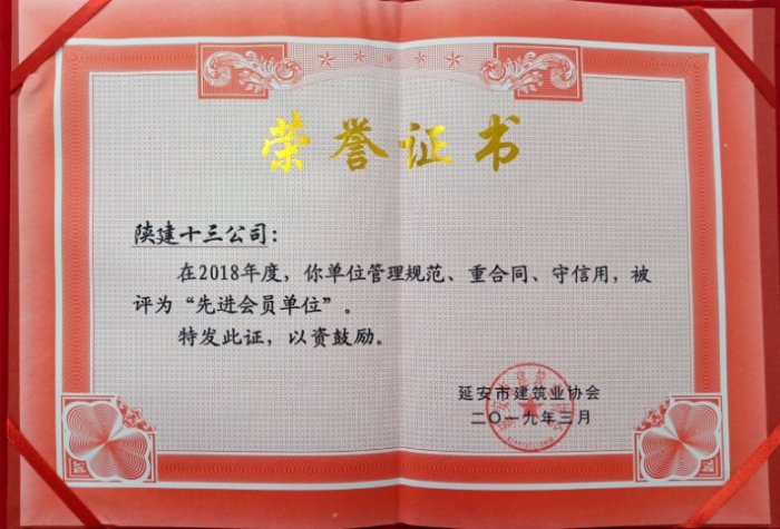 2018年度延安市建設(shè)工程質(zhì)量安全生產(chǎn)先進集體
