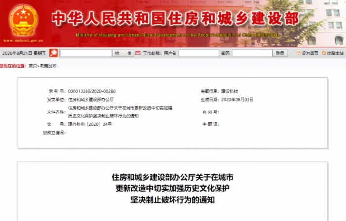 日前,住建部辦公廳下發(fā)《關于在城市更新改造中切實加強歷史文化保護堅決制止破壞行為的通知》,要求,在城市更新改造中切實加強歷史文化保護,堅決制止破壞城市片區(qū)和建筑的行為。
