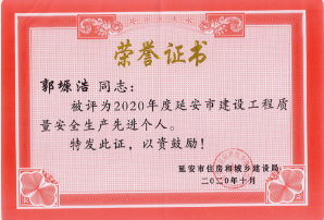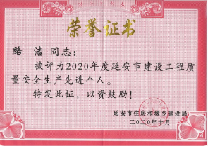 路潔、郭塬浩榮獲“延安市建設工程質(zhì)量安全生產(chǎn)先進個人”榮譽稱號。