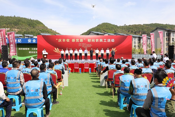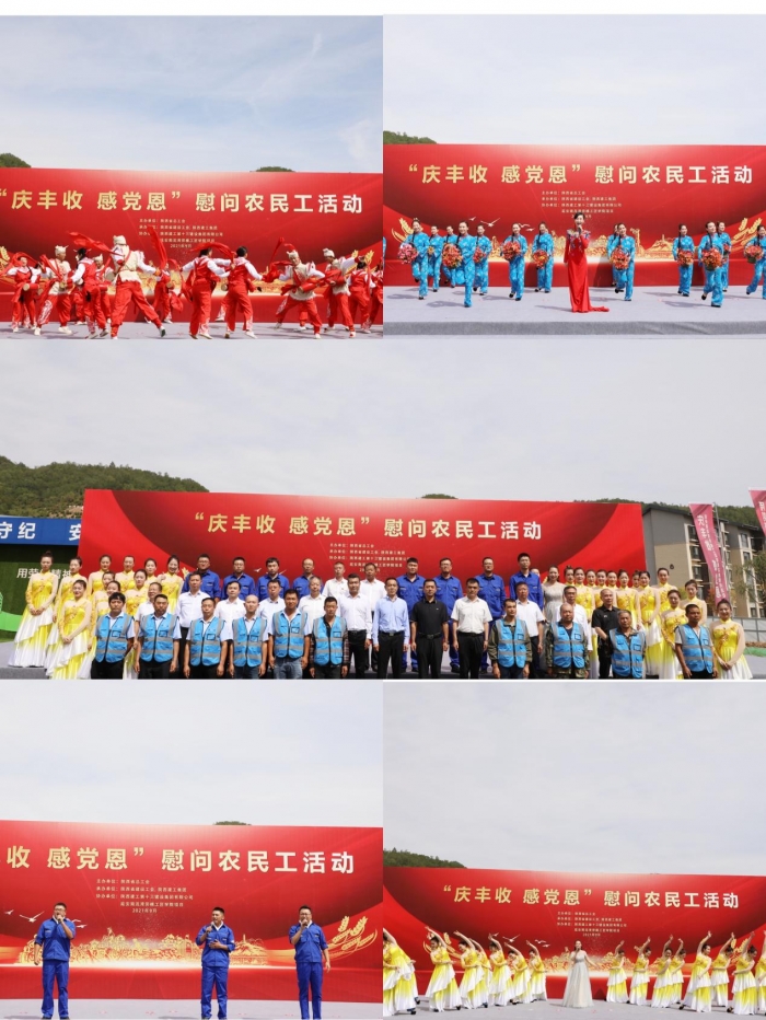 在第四個(gè)“中國農(nóng)民豐收節(jié)”到來之際,9月22日,陜西省總工會(huì)走進(jìn)陜建十三建集團(tuán)延安南泥灣勞模工匠學(xué)院項(xiàng)目,開展“慶豐收、感黨恩”慰問農(nóng)民工活動(dòng)。