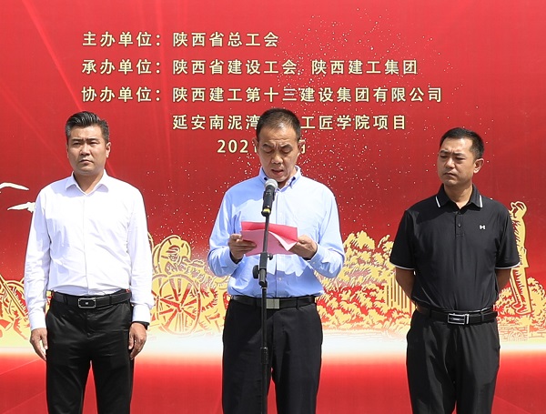 陜西建工集團(tuán)黨委常委、副總經(jīng)理劉小強(qiáng)在致辭中表示陜建作為我省最大的國企建筑鐵軍,在省委、省政府的領(lǐng)導(dǎo)下,在70余年的發(fā)展長河中,建設(shè)了一大批國防、科教、文衛(wèi)、公共服務(wù)等重點(diǎn)項(xiàng)目,積極服務(wù)于陜西發(fā)展和國家建設(shè),既有深厚的文化積淀,又有雄厚的綜合實(shí)力。有幸承建延安南泥灣勞模工匠學(xué)院這個(gè)重點(diǎn)項(xiàng)目,我們倍感榮幸,倍加珍惜。我們已將該項(xiàng)目列為十三建集團(tuán)的“一號工程”,調(diào)集精兵強(qiáng)將,以“出手必須出彩,完成必須完美”的作風(fēng)、“開局就是決戰(zhàn),起步就是沖刺”的魄力,“努力到無能為力,拼搏到感動(dòng)自己”韌勁,科學(xué)合理、協(xié)調(diào)高效的管理模式,將項(xiàng)目建設(shè)成為優(yōu)質(zhì)結(jié)構(gòu)工程、綠色施工示范工程,爭創(chuàng)魯班獎(jiǎng),為省總工會(huì)交上一份滿意的“答卷”。