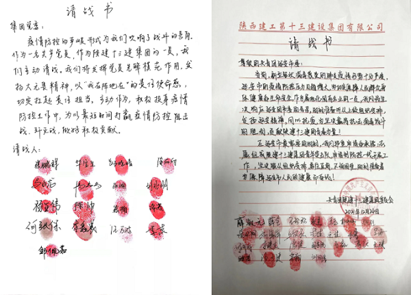 為了積極應(yīng)對(duì)嚴(yán)峻的疫情防控形勢,在陜建十三建集團(tuán)黨委的號(hào)召下,全體黨員干部、團(tuán)員青年、90后、00后紛紛遞交請戰(zhàn)書,請?jiān)父耙痪€服務(wù)疫情防控工作,助力延安市打贏疫情防控阻擊戰(zhàn)、殲滅戰(zhàn)。