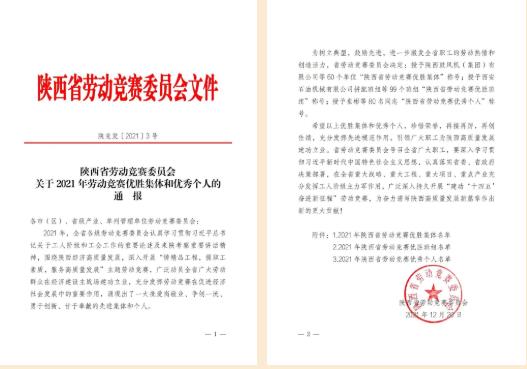 集團(tuán)榮獲陜西省勞動競賽優(yōu)勝集體