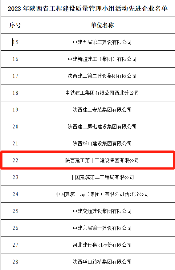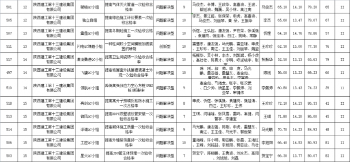 近日,陜西省建筑業(yè)協(xié)會表彰了2023年度陜西省工程建設(shè)優(yōu)秀QC小組、QC小組活動先進(jìn)企業(yè)、卓越領(lǐng)導(dǎo)者、優(yōu)秀推進(jìn)者。集團(tuán)24項成果榮獲“2023年陜西省工程建設(shè)優(yōu)秀QC小組”(其中I類成果獎11項,II類成果獎12項,III類成果獎1項)