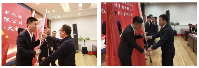 在“師帶徒”活動(dòng)啟動(dòng)儀式上,來自集團(tuán)機(jī)關(guān)部門、各基層單位的13對(duì)師徒進(jìn)行結(jié)對(duì),舉行了拜師儀式,并簽訂了“師帶徒”協(xié)議書。師父代表鄧濤、湯勇,徒弟代表張漢武、李竹鳳分別進(jìn)行表態(tài)發(fā)言。同時(shí),儀式上,集團(tuán)總工程師王弘起、副總經(jīng)理?xiàng)钣篮攴謩e為工人先鋒號(hào)、青年突擊隊(duì)授旗。