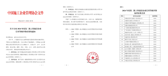 AAA!集團(tuán)榮評中施企協(xié)信用等級最高評價(jià)